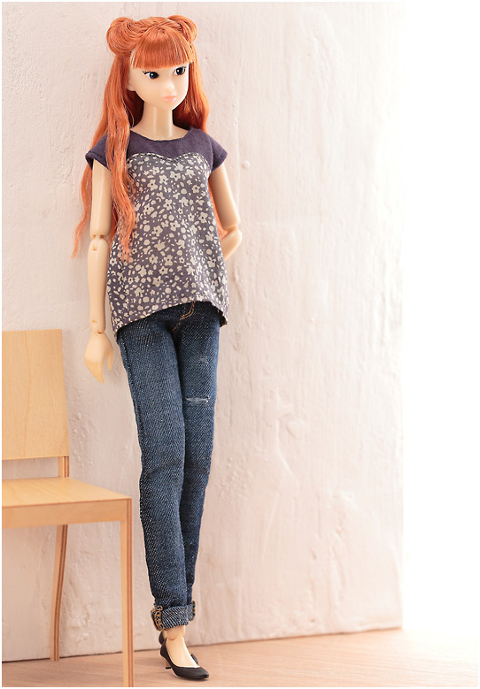 みんなでつくるmomokoドール2012、ロールアップデニム(北風とビオラ付属)、柄トップス