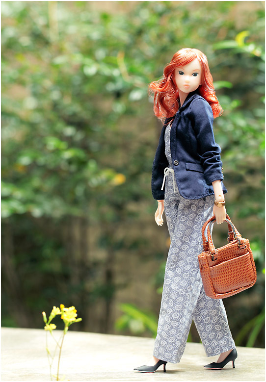 レトロマーメイド、テーラードジャケット(Lady Long Legs付属)、STOCオリジナル ロングオールインワン(Wake-UP momoko DOLL WUDsp Azone006(チンチラシルバー)付属)、ハイヒールパンプス(STOC)、合皮ハンドバック(Groovy Baby付属)、腕時計(ナイントゥファイブ付属)、ネックレス(ナイントゥファイブ付属)