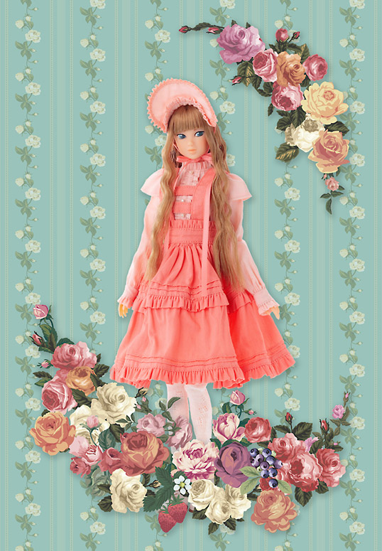 みんなでつくるmomokoドール2020、スタンドカラーフリルブラウス(MOMOKO by momoko ローズピクニック ドレスセット付属)、ティアードジャンパースカート(MOMOKO by momoko ローズピクニック ドレスセット付属)、ハーフボンネット(MOMOKO by momoko ローズピクニック ドレスセット付属)